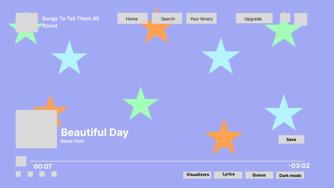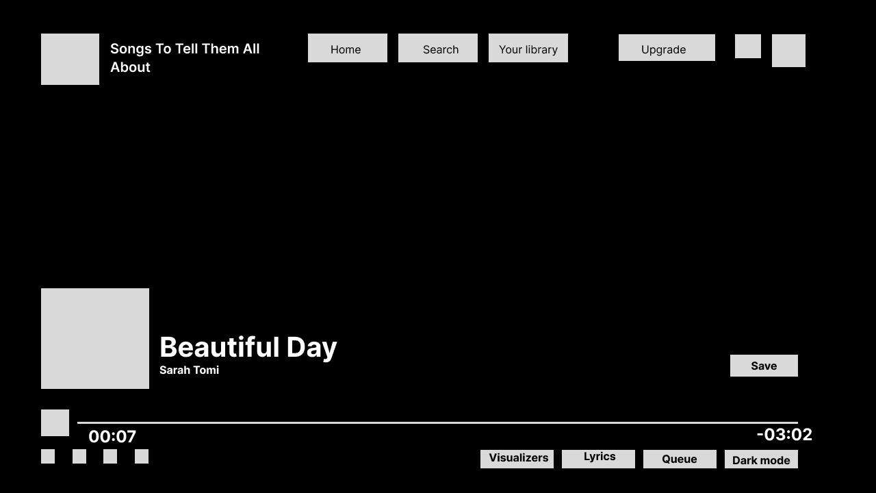 Without premium, TV and web users do not have access to display lyrics on screen, and even then, having only one visual option for larger screens does not give users much control over their music listening experience. Currently, aside from the lyric function, you can choose to either have one static image of the music artist displayed on the entire TV screen, or dark mode which simply removes the image and replaces it with a black background. To bring more interaction and visual appeal to the Spotify TV App, I designed the visualize it feature, which allows users a more visual experience while listening with visualizers to choose from and interactive features such as interactive mini-games, a slideshow, and karaoke.